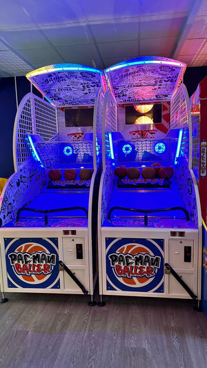 This skill-based game features premium speakers with a bass subwoofer for immersive sound, plus official PAC-MAN Baller branded basketballs. Link multiple units together to amp up the competition and keep players coming back for more.