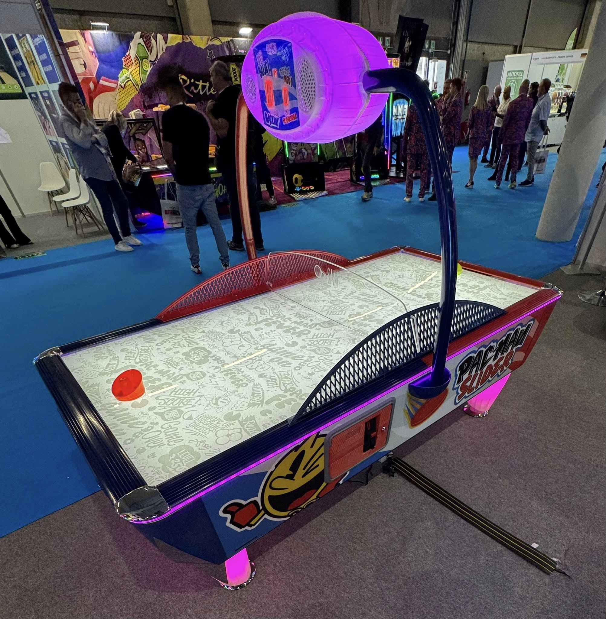 The cool and colorful PAC-MAN Slider Air Hockey is guaranteed to light up the room, and players’ faces. It features both original music and classic PAC-MAN sound effects, color-changing playfield lighting and modern software. Perfect as a set with PAC-MAN Baller and PAC-MAN Roller..