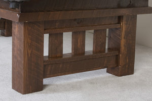 The Barnwood Cheyenne Pool Table is a stunning blend of rustic elegance and durable craftsmanship, perfect for lodge, cabin, or western-style game rooms. Built from rough-sawn pine timbers to replicate an authentic barnwood look, it features a mission-style leg system made from six-inch and four-inch timbers for exceptional stability. The body wrap, side skirts, and top rails are crafted from thick, rough-sawn pine boards, while the black square hand-forged iron clavos doornails add a bold western or ranch-inspired accent to both the spotting points and side rail skirts. Finished with a catalyzed lacquer coating, this pool table is designed to maintain its beauty and performance for years.