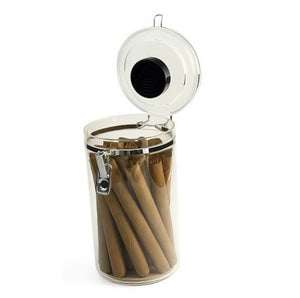 Enjoy simple, effective cigar storage with this clear acrylic jar humidor. Compact yet efficient, it includes a built-in humidifier and Spanish cedar base to preserve aroma and freshness.