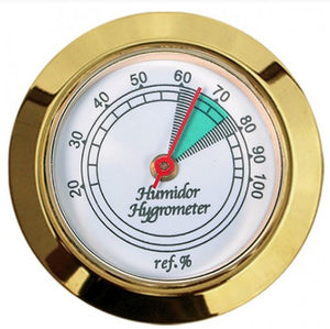Keep your cigars in perfect condition with this gold bezel glass face hygrometer, designed for accuracy and style.