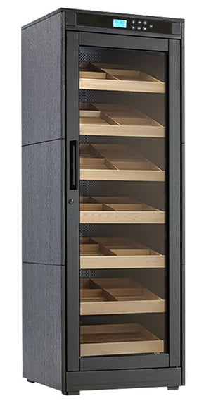 Elevate your cigar storage with the Remington Lite Electric Climate-Controlled Cabinet, featuring a sophisticated black oak wood finish that complements any space. Designed for serious cigar collectors, this spacious humidor holds up to 2000 cigars while delivering precise climate control to maintain optimal aging conditions.