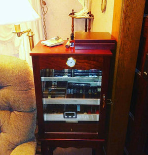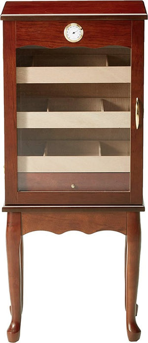 Bring timeless sophistication and high-capacity storage to your cigar collection with the Belmont 600 Ct. Cigar Humidor. Crafted in a rich bronze mahogany finish, this elegant cabinet features a full-length glass door, allowing a clear view of your cigars while maintaining ideal humidity levels.