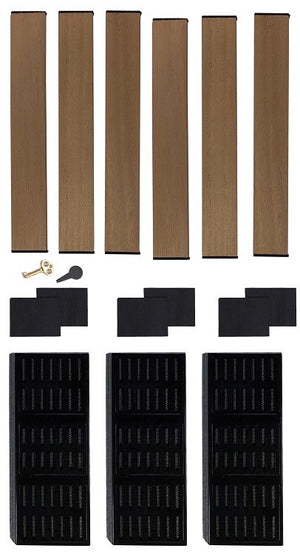 Designed for both functionality and display, the interior is fully lined with premium Spanish cedar and includes three removable trays, six adjustable dividers, and a pull-out drawer for organizing accessories or cigar varieties. The three included humidifiers and an external mount hygrometer help maintain precise humidity, while a rear wire port offers easy integration for electronic humidification or lighting.