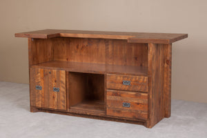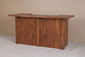 This 84" Barnwood Bar is our standard-size model, expertly crafted from rough-sawn pine timbers to replicate the authentic barnwood look. Perfect for a rustic game room, lodge, or cabin, this bar can also be custom-built to your exact specifications. Whether you need different angles, extended lengths, extra cabinets or drawers, additional shelving, a built-in sink, or a wine rack—the possibilities are endless. Share your ideas, and we’ll turn them into reality.