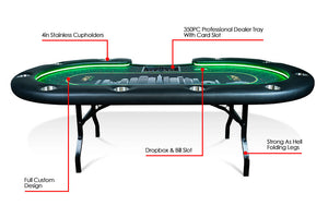 Our most requested product - a folding poker table with LEDs! We took one of our best-sellers, The Aces Pro Table, and added LEDs to it! But that's not all โ we've taken it one step further with our SAH (Strong As Hell) legs. These heavy-duty reinforced legs can hold 700 lbs! The Aces Pro Alpha delivers the same professional-grade gaming action as the Aces Pro but with LEDs, along with the convenience of a premium folding-leg poker table.