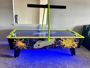 The Dynamo Hot Flash Home Air Hockey Table brings the award-winning design and advanced technology of the Hot Flash 2 into your home. Known as the #1 selling air hockey table worldwide, this table combines unmatched durability, quality, and visual excitement. Ideal for home game rooms or any location where you want that authentic touch without coin operation, the Hot Flash delivers fast-paced, non-stop action with its patented blower system and UV reactive glow.
