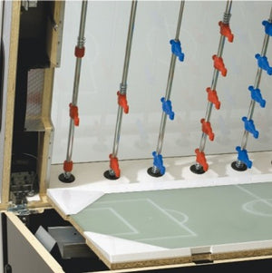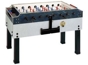 The Garlando Olympic Outdoor is a commercial grade table with top glass and telescopic safety rods. It uses anti-break glass covering the playfield area and prevents tampering with the game, theft of balls, reduces the noise and keeps the playing area clean. It is entirely manufactured with water-proof materials and components: marine plywood cabinet, water-resistant glues and metal details in stainless steel with anti-rust treatment. It is ideal where the table cannot be continuously supervised; the glass covers the playing field prevents any kind of tampering of the game, making it impossible playing free or unduly prolonging the playing. This table therefore guarantees the maximum profitability for the operators.