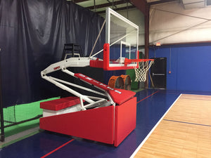 The Tempest Triumph Portable Basketball Goal is the ultimate choice for fieldhouses, gymnasiums, and competitive indoor courts where high-intensity play is a priority. With an impressive 66" base-to-backboard extension, premium safety padding, and a 72" competition-grade tempered glass backboard, the Tempest is built for aggressive, above-the-rim basketball action.